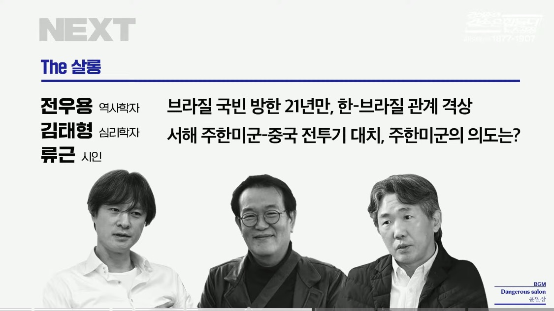 ▷전우용 : 그러니까 서울에서 파이프를 뚫어서 지구 핵을 통과해서 가면 아르헨티나쯤 나온다 그러더라고요. 거의 정반대편이에요. 그런데 지난 50년 동안의 역사 궤적을 보면 무슨 뭐라 그래야 되나, 서로 거울을 보고 달리는 것 같아요. 지금도 그 공통점이 다른 나라와는 공유할 수 없는 공통점들이 있잖아요. 하나는 소년공 출신이 대통령이라는 거, 둘은 전직 대통령이 감옥에 있다는 거, 셋은 트럼프가 전직 대통령을 구해 줄 거라고 믿는 사람들이 상당수 있다는 거.